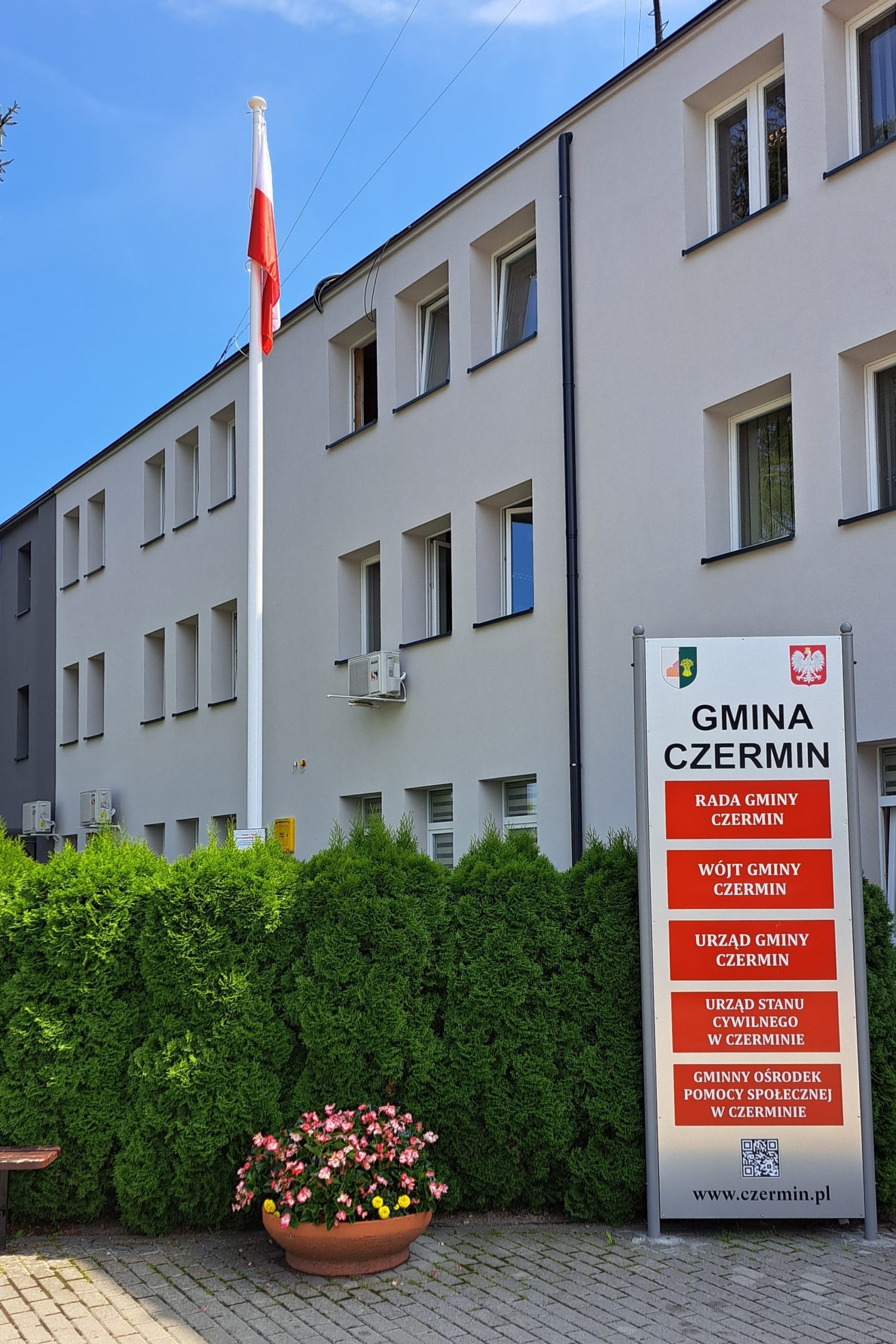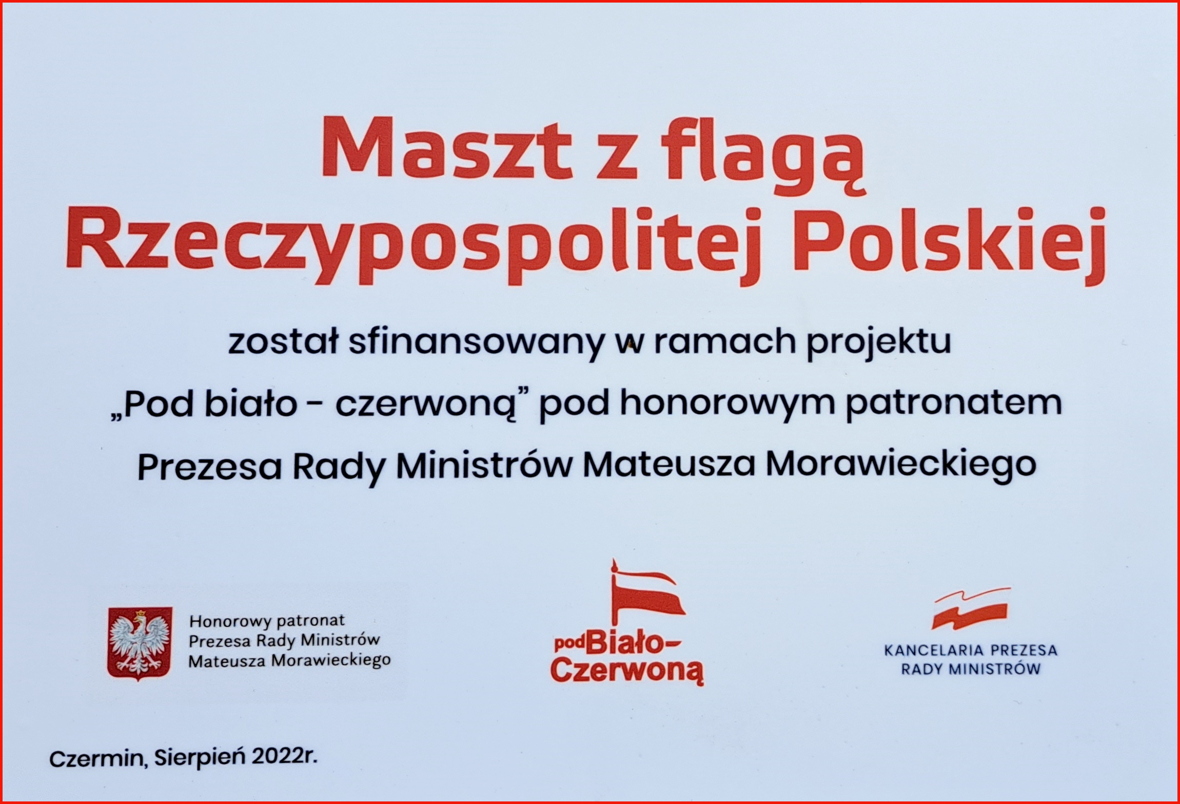Przed budynkiem Urzędu Gminy Czermin stoi już nowy maszt, na którym dumnie powiewa flaga Rzeczypospolitej Polskiej. Maszt flagowy wykonany został w ramach projektu „Pod Biało-Czerwoną”, nad którym patronat honorowy objął Prezes Rady Ministrów Mateusz Morawiecki.