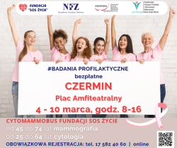 Fundacja SOS Życie oraz Wójt Gminy Czermin Sławomir Sidur serdecznie zapraszają wszystkie Panie do udziału w badaniach profilaktycznych – mammograficznych i cytologicznych, które odbędą się w Czerminie.